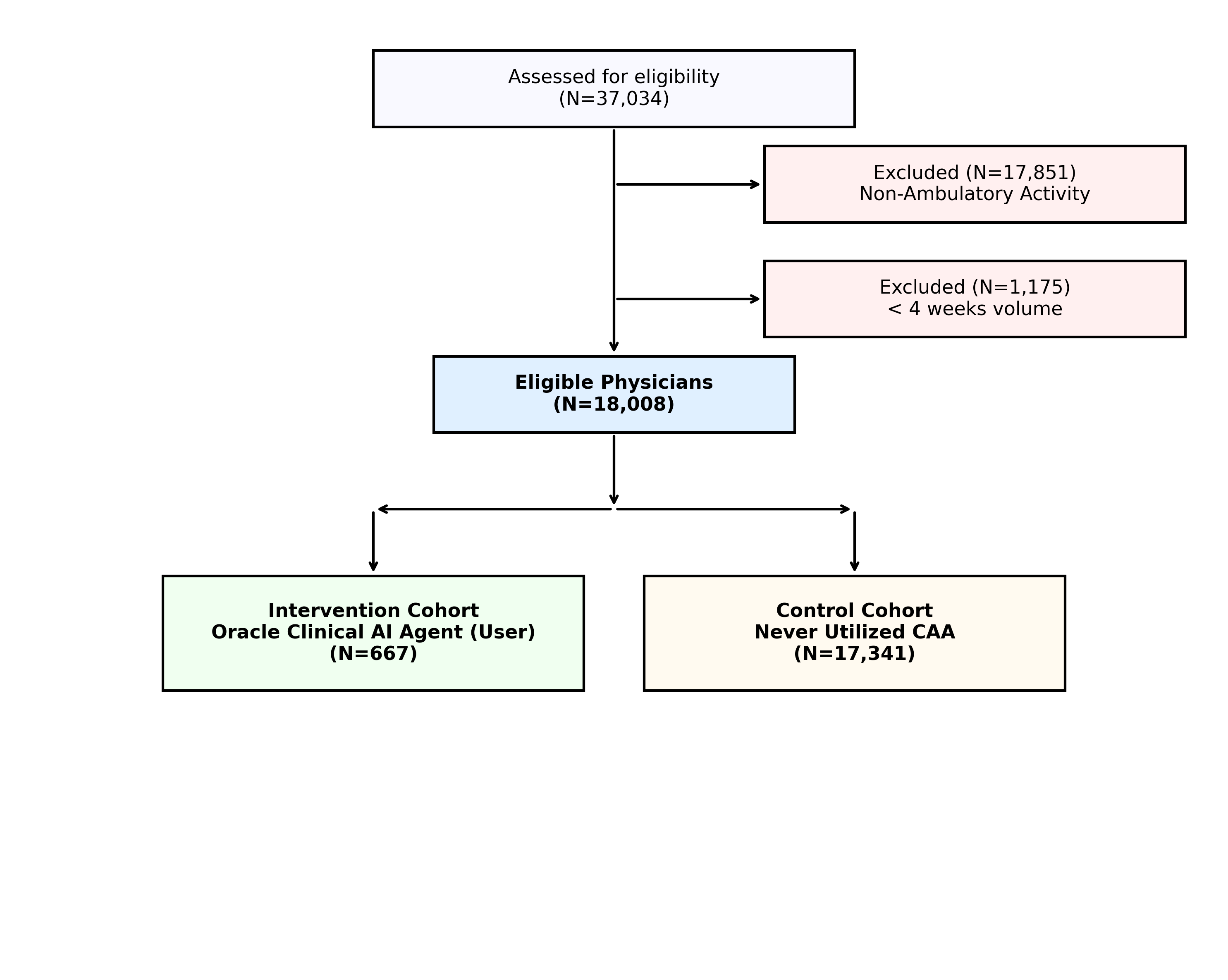- Intervention Cohort: Providers who gain access to and subsequently utilize the Oracle Clinical AI Agent at least once during their facility’s designated deployment phase.